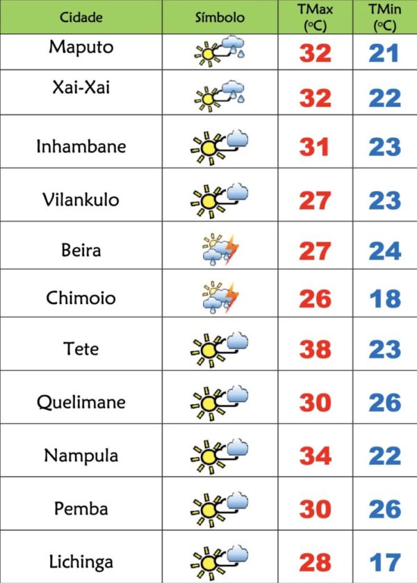 Byfalabwenovembro 27, 2025O Instituto Nacional de Meteorologia(INAM) prevê o seguinte estado do tempo para esta quinta-feira(27), 1298 dia em Emergência de Saúde Pública em Moçambique:...