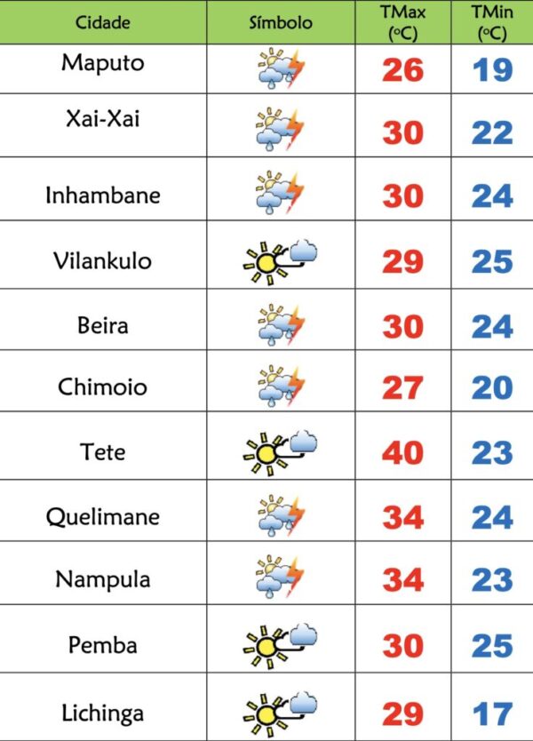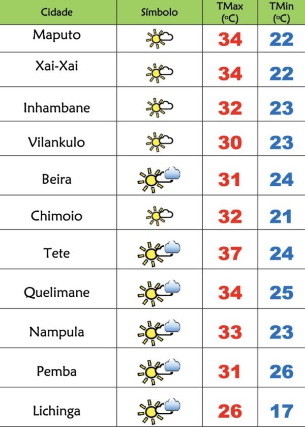 Byfalabwenovembro 25, 2025O Instituto Nacional de Meteorologia(INAM) prevê o seguinte estado do tempo para esta terça-feira(25), 1296 dia em Emergência de Saúde Pública em Moçambique:...