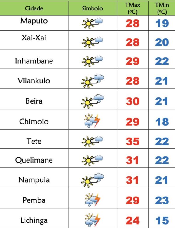 O Instituto Nacional de Meteorologia(INAM) prevê o seguinte estado do tempo para esta terça-feira(11), 1283 dia em Emergência de Saúde Pública em Moçambique:...