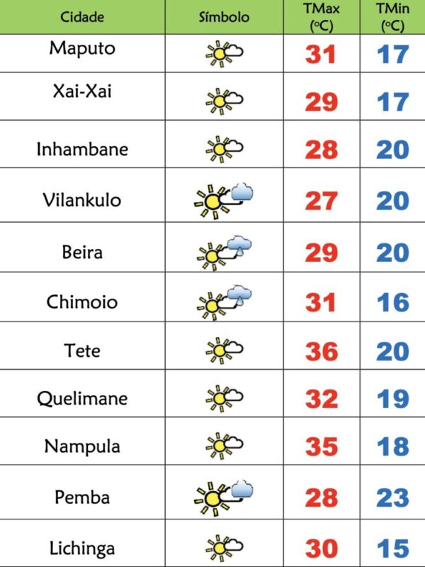 Byfalabweoutubro 23, 2025O Instituto Nacional de Meteorologia(INAM) prevê o seguinte estado do tempo para esta sexta-feira(24), 1265 dia em Emergência de Saúde Pública em Moçambique:...