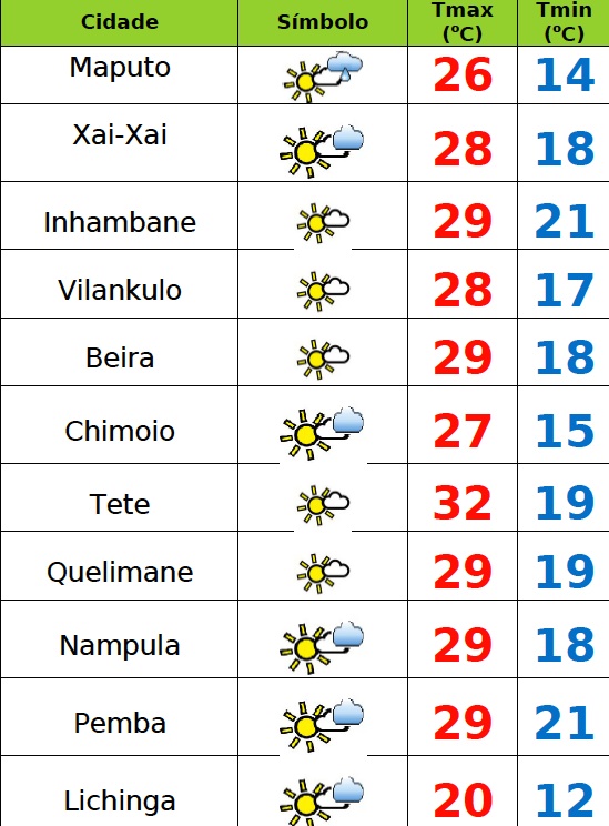 Byfalabwejulho 5, 2025O Instituto Nacional de Meteorologia(INAM) prevê o seguinte estado do tempo para este sábado(05), 1154 dia em Emergência de Saúde Pública em Moçambique:...