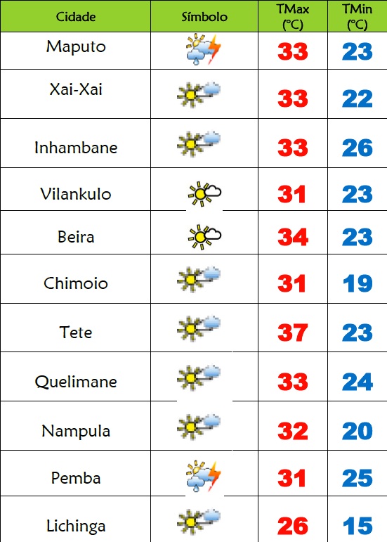 O Instituto Nacional de Meteorologia(INAM) prevê o seguinte estado do tempo para este domingo(13), 1082 dia em Emergência de Saúde Pública em Moçambique:...