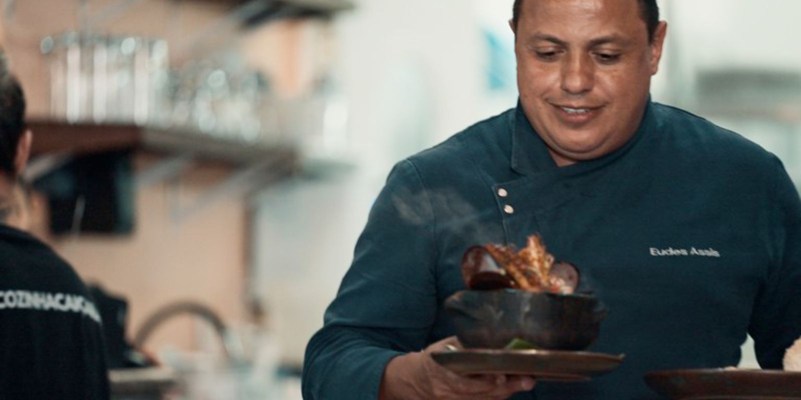 Durante a conversa, o chef Eudes Assis conta suas experiências pessoais e profissionais no mundo da culinária, em especial com ingredientes e pratos da gastronomia caiçara. “O lugar mais bonito é aqui e agora para preservar nossas origens, cultura e valores. Isso é especial demais para mim”, afirma.