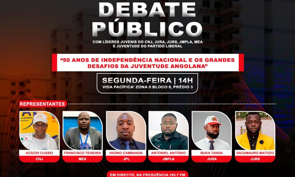 A Rádio Correio da Kianda promove nesta segunda-feira, 14, um debate público, na centralidade Vida Pacífica, no Zango 0, sobre o “50° Aniversário da Independência Nacional e os Desafios da Juventude Angolana”.