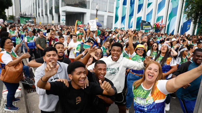 A 18ª edição da Marcha para Jesus reuniu milhares de fiéis no centro do Rio neste sábado (24.mai.2025). O evento religioso começou na avenida Presidente Vargas e terminou na praça da Apoteose, no Sambódromo. Os organizadores estimam a participação de cerca de 300 mil pessoas.
