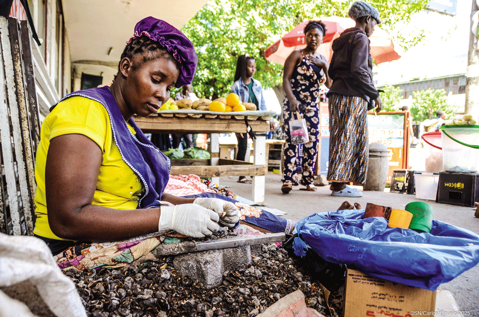 Na luta pela sobrevivência, há mulheres que, debaixo de árvores, esquinas e paragens, procuram ganhar a vida através da venda de castanha de caju assada, uma actividade que se tornou importante fonte de renda para várias famílias.