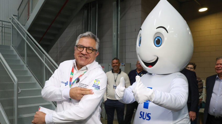 Acompanhado do Zé Gotinha, símbolo da vacinação no país, Padilha lembrou também da importância da vacinação contra a influenza.