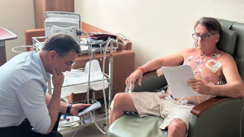 “Pense num homem forte”, diz Flávio em visita a Bolsonaro no hospital